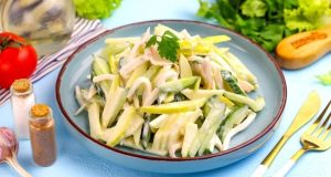 Салат с кальмаром, огурцом и яблоком