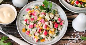 Постный салат с крабовыми палочками