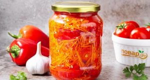 Описание приготовления: Ниже я расскажу подробнее, как приготовить помидоры в овощной заливке. Помидоры выбирайте небольшого размера, плотные и мясистые. Хорошо подойдет сорт сливка. По желанию в заливку можно добавить мелко нарезанную зелень: петрушку, кинзу или укроп. Помидоры получаются пикантными, чуть остренькими и очень ароматными. Такая закуска отлично разнообразит повседневное меню в зимнее время года, так что берите на заметку! Основной ...
