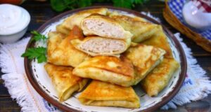 1 час (ваши 35 мин) Тонкие блинчики сворачиваются в аппетитные треугольники с нежной и сочной начинкой из куриного фарша и лука. Затем обжариваются на малом огне, чтобы начинка успела полностью приготовиться. Получается аппетитно, сытно и очень вкусно. Продукты Для блинчиков: Молоко – 160 мл Яйцо – 1 шт. Масло растительное – 1 ст. ложка (15 мл) Мука – 100 г ...