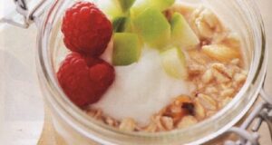 6 порций Вкусный и полезный злаковый завтрак можно приготовить накануне, а утром переложить в герметичную емкость и взять с собой на работу. Продукты (на 6 порций) Овсяные хлопья быстрого приготовления – 2 стакана Молоко – 1 стакан Яблочный сок – 1 стакан Мед жидкий – 1/4 стакана Корица молотая – 1 ч. л. Миндаль или грецкие орехи (жареные и рубленые) ...