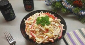 Читать далее »Праздничный салат “Змейка” с огурцами, курицей и яблоком