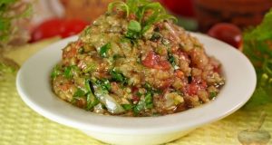 Икра из баклажанов – ароматная и насыщенная закуска. Запечённые баклажаны вместе с томлёным луком, свежими помидорами, чесноком и зеленью превращаются в нежную овощную пасту, которую подают на хлебе или используют как гарнир. Этот вкус настоящего лета дополняет лёгкий дымный аромат. Продукты Баклажаны – 1,2 кг Помидоры – 450 г Лук репчатый – 150 г Масло растительное – 50 мл Чеснок ...