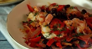 Шакшука с креветками — это яркое и пряное блюдо с морским характером. Сочные томаты, ароматные специи и нежные яйца идеально дополняются сочными креветками. Легко готовится, но поражает вкусом и внешним видом. Идеально для завтрака или неспешного бранча. Продукты Яйца куриные – 4 шт. Томаты очищенные в собственном соку – 300 г Креветки – 6 шт. Лук репчатый – 125 г ...