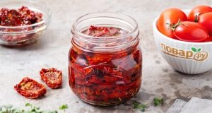 Описание приготовления: Ниже я расскажу подробнее, как приготовить вяленые томаты. Винный уксус можно заменить яблочным. Лучше всего подойдут плотные мясистые помидоры среднего размера. Например, сорт сливка. Если они недостаточно сладкие, можно при сушке посыпать их немного сахаром. Также в баночку для аромата можно добавить свежий тимьян или розмарин. Вяленые томаты получаются ароматными, с ярким насыщенным вкусом. Их можно подавать, как ...