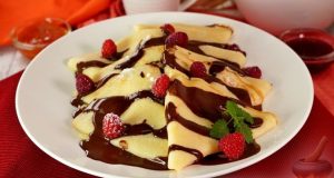 30 мин (ваши 20 мин) Палачинки (чешск. palačinka) – тонкие, эластичные блинчики, популярные в чешской, словацкой и других кухнях Центральной Европы. Их жарят на сковороде до лёгкой румяности, затем сворачивают и подают с различными дополнениями. В данном рецепте – с растопленным тёмным шоколадом и свежей малиной. Продукты Молоко – 500 мл Яйца – 3-4 шт. Сахар – 35 г Мука ...