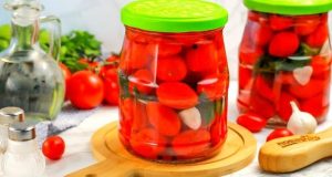 Описание приготовления: Расчет продуктов указан на 2 банки по 500 мл. По желанию выбирайте округлые плоды или продолговатые, в любом случае они получатся очень вкусными и сочными. Маринад перед заливкой обязательно пробуйте на вкус, чтобы он не получился слишком кислым или соленым, тогда и помидоры "вберут" его в себя. Хранить заготовку желательно на холоде, но можно и в кладовой, в ...