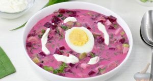 8 порций 2 часа (ваши 40 мин) Холодный свекольный суп – прекрасное блюдо для жаркого лета. Этот суп сочетает в себе питательность свеклы, свежесть огурца и лёгкую кислинку кефира. Варёные яйца и свинина добавляют сытности и делают суп более сбалансированным. Сметана, зелень и специи – завершающие акценты, которые дополняют вкус и аромат. Продукты (на 8 порций) Свекла – 500 г Огурец ...