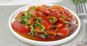 4 порции 1 час 30 мин (ваши 25 мин) Натуральная сладость запечённого сладкого перца идеально сочетается с ароматной кинзой и петрушкой. Соевый соус, мёд, уксус и пряности добавляют закуске пикантную нотку, насыщенность и глубокий вкус. Продукты (на 4 порции) Перец болгарский – 1 кг Кинза свежая – 15 г Петрушка свежая – 15 г Чеснок – 10 г Соевый соус – ...