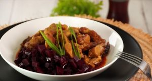 Верещака – традиционное блюдо старопольской кухни, напоминающее густое мясное рагу, приготовленное в кисло-сладком соусе на основе свекольного кваса. Классически верещаку готовят из свинины, чаще корейки, но допускаются и другие части – как в этом рецепте со свиной шеей. Мясо тушится в духовке, а подаётся с варёной свёклой – горячей или холодной. Продукты Свиная шея – 600 г Свёкла крупная – ...