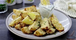 Запечённый молодой картофель в кунжуте, со сметанным соусом