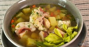 Балык чорбасы – ароматный рыбный суп, вдохновлённый турецкими традициями. Нежное филе морского окуня, овощи и лёгкий прозрачный бульон создают тонкий, сбалансированный вкус, который насыщает, не перегружая. Прекрасный выбор для здорового обеда. Продукты Окунь морской – 700 г Лук репчатый (крупный) – 180 г Морковь (средняя) – 180 г Картофель (средний) – 450 г Стебель сельдерея – 50 г Лимон (для ...