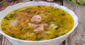 6 порций 1 час 20 мин (ваши 30 мин) Щи с копченой колбасой и сосисками – очень вкусное и ароматное первое блюдо. Щи богаты молодыми овощами, а колбаса придает блюду невероятный подкопченный аромат. Приготовьте обязательно! Продукты (на 6 порций) Куриные бедрышки – 320 г Капуста белокочанная молодая – 250 г Колбаса полукопченая – 100 г Сосиски – 100 г Картофель – ...