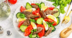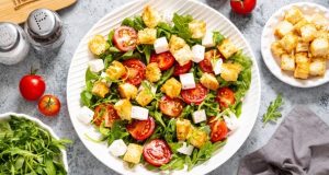 Описание приготовления: Ниже я расскажу подробнее, как приготовить салат из сухариков. Для сухариков лучше всего подойдет белый хлеб типа багета, чиабатты или батона. Вместо руколы можно использовать свежий шпинат, кейл или салат ромэн, а фету заменить на козий или адыгейский сыр. Салат получается легким, сочным и насыщенным на вкус. Благодаря сухарикам он лучше насыщает, а еще они добавляют салату интересную ...
