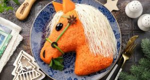 Описание приготовления: Если хотите удивить гостей за праздничным столом или просто добавить веселья и хорошего настроения в новогоднюю ночь, то непременно обратите внимание на этот рецепт. Расскажу, как приготовить "Оливье" в виде лошади. Конечно же аналогично можете приготовить любой другой любимый вами салат и преобразить его в символ наступающего года. Не салат, а настоящее произведение кулинарного искусства, побалуйте и удивите ...