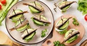 Описание приготовления: Для приготовления канапе со шпротами можете взять любой хлеб. По желанию его так же можно обжарить или подсушить в духовке. Готовятся такие мини-бутерброды ну очень просто и быстро, а выглядят эффектно и аппетитно. Идеальный вариант для сытной и вкусной закуски на скорую руку. Канапе по этому рецепту подойдут и для праздничного застолья, и для фуршета, и просто для ...