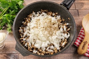 Так же добавьте нарезанный мелкими кубиками лук, соль и молотый перец по вкусу.