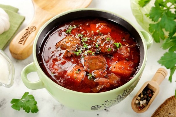 Многие варят кусочки свеклы в воде, получая свекольный отвар, но этого можно избежать, если вы заранее отварите или запечете этот корнеплод. Также не забудьте отварить вместе со свеклой картофель, а куриные яйца — отдельно, и охладить. Даже жидкость для супа должна быть охлажденной или со льдом! Для того, чтобы ее подкислить, используйте 2 щепотки лимонной кислоты или яблочный уксус — 2 ст.л.