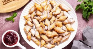 Готовое тесто заверните в пленку, уберите в холодильник на время приготовления начинки. Тесто выглядит неоднородным, так и должно быть, за счет этого у него будет легкая слоистая текстура.