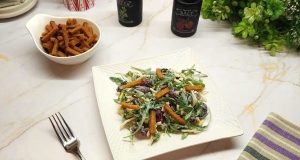 Панцаросалата – греческий салат из запечённой или варёной свёклы с йогуртовым соусом. Свекольный салат дополняется грецкими орехами, зеленью, а также маслинами. Он прост по составу и в приготовлении, и хорош как для домашнего обеда, так и для праздника.