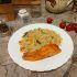 Рис отварите в соленой воде до готовности, откиньте на сито, промойте и дайте воде полностью стечь.