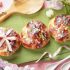 Помидоры черри разрежьте пополам, а красный лук нарежьте кубиками. Добавьте в миску.