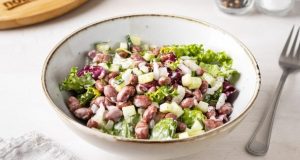 Выложите майонез любой жирности, можно использовать яичный, веганский, соевый и т.д. Помните, что блюда, заправленные майонезом, имеют срок годности — сутки!
