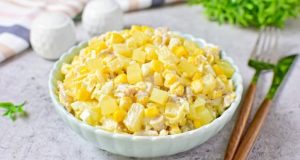 Сверху выложите салат.