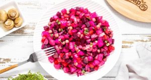Салат со свеклой, черносливом и сыром «Барон» готов. Можно подавать к столу.