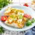 12. Подготовленные яичные лодочки щедро наполнить овощной начинкой, слегка утрамбовать ее пальцами, чтобы получились аккуратные горочки, и выложить сверху кусочек селедки, не очень сильно вдавив его в начинку, чтобы он нормально держался и не съезжал.