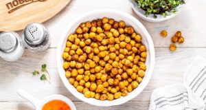 Добавьте соль, измельченный чеснок, молотый черный перец и чили. Жарьте еще 1 минуту.