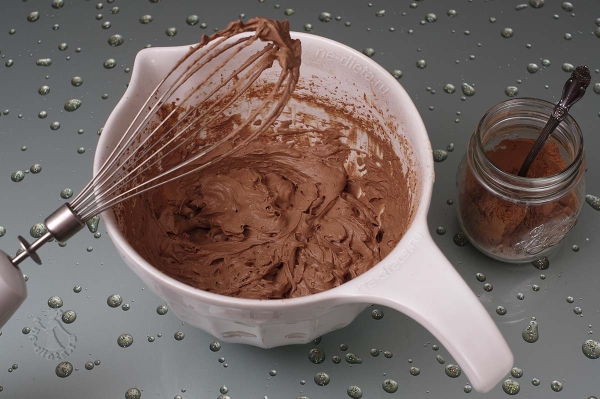 3. Добавить какао-порошок и еще раз все как следует перемешать.