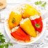 Картофель очистите. Нарежьте кубиками перец и картофель.