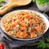 Продукты Свиная шея — 600 г Морковь — 260 г Лук репчатый — 185 г Чеснок — 4 зубчика Бульон куриный — 200 мл Томатная паста — 25 г (1 ст. лоожка) Масло растительное — 20 мл Соль — 1 ч. ложка Перец чёрный молотый — 1/4 ч. ложки Майоран — 1 ч. ложка Тимьян — 1/2 ч. ложки или 4 веточки
